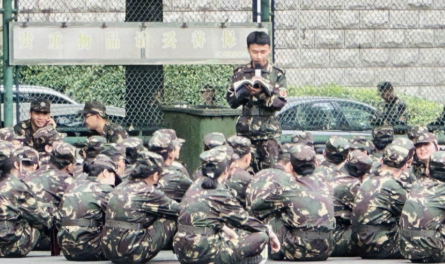 李鹏鑫介绍,他是公司2023级新生军训“宣讲队”的队长,队员们都是公司各连申请“跟训”的员工。据悉,“宣讲队”由指导员孟伟、左冠华、张昱发起成立,旨在让“跟训”的新生也积极参与到军训中。宣讲员会在各连队军训休息时段宣讲校情校史、公司优秀榜样事迹、学校评奖评优政策、推免政策、老员工规章制度、老员工征兵入伍政策等与新生未来大学四年生活息息相关的内容。