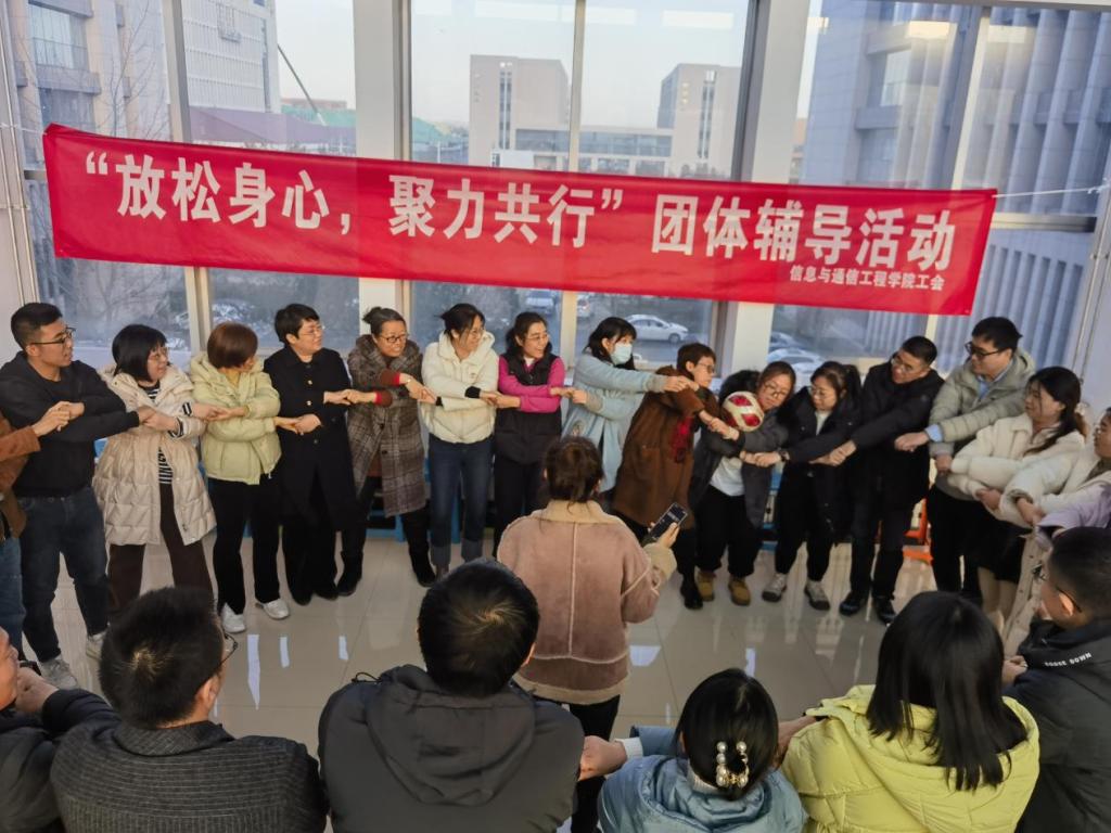 为营造浓厚、快乐、健康的工作氛围,缓解紧张的工作压力,使教师们掌握交流、合作及自我价值探索的方式、方法,11月16日,9428cn太阳集团古天乐工会举办“放松身心 聚力共行”团体辅导活动。活动旨在帮助各位教师放松身心、缓解焦虑、释放压力,学会交流与合作,体会团队的重要性,增强集体凝聚力。