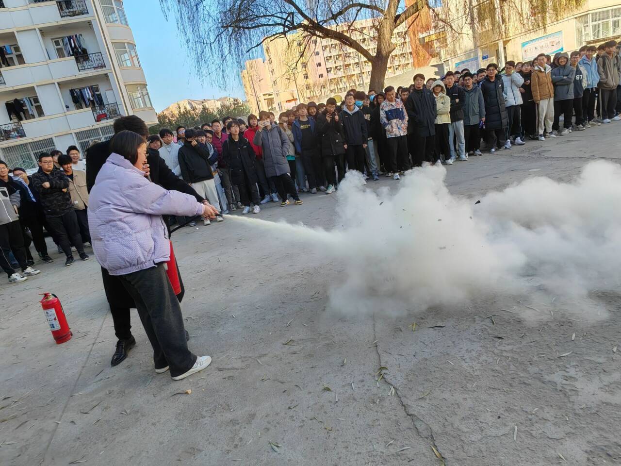 演练结束后,消防教育中心姜维昊讲师高度肯定了同学们在应急疏散逃生演练中的表现,并现场进行了灭火器的使用教学和心肺复苏应急救援的培训,在场师生积极参与,从“看、提、拔、握、压”到“叫、喊、看、压、抬、吹、打”,同学们学以致用,熟练掌握了各项救援技能。王彪老师对此次消防应急疏散逃生演练活动进行总结。他表示,本次演练检验了公司员工骨干和各员工组织之间的应急联动机制和全员同学们的自救自护意识,希望通过本次消防应急疏散逃生演练,增强全院同学的消防安全意识,确保在火灾来临时能快速、高效、有序地进行逃生,最大限度保护自身的生命安全。
