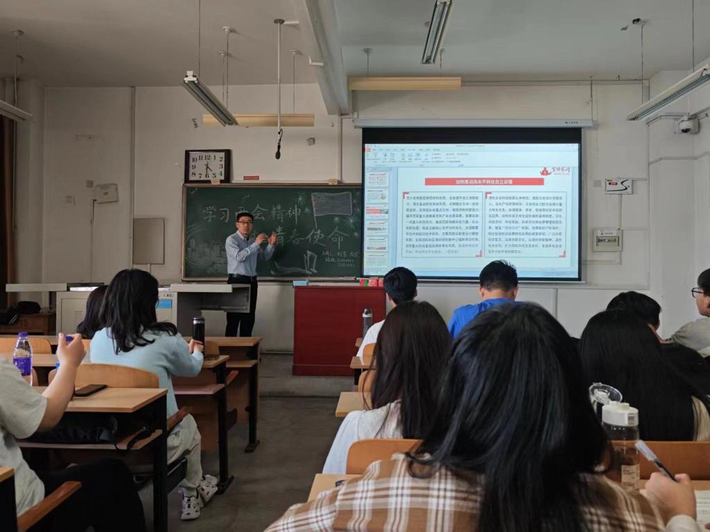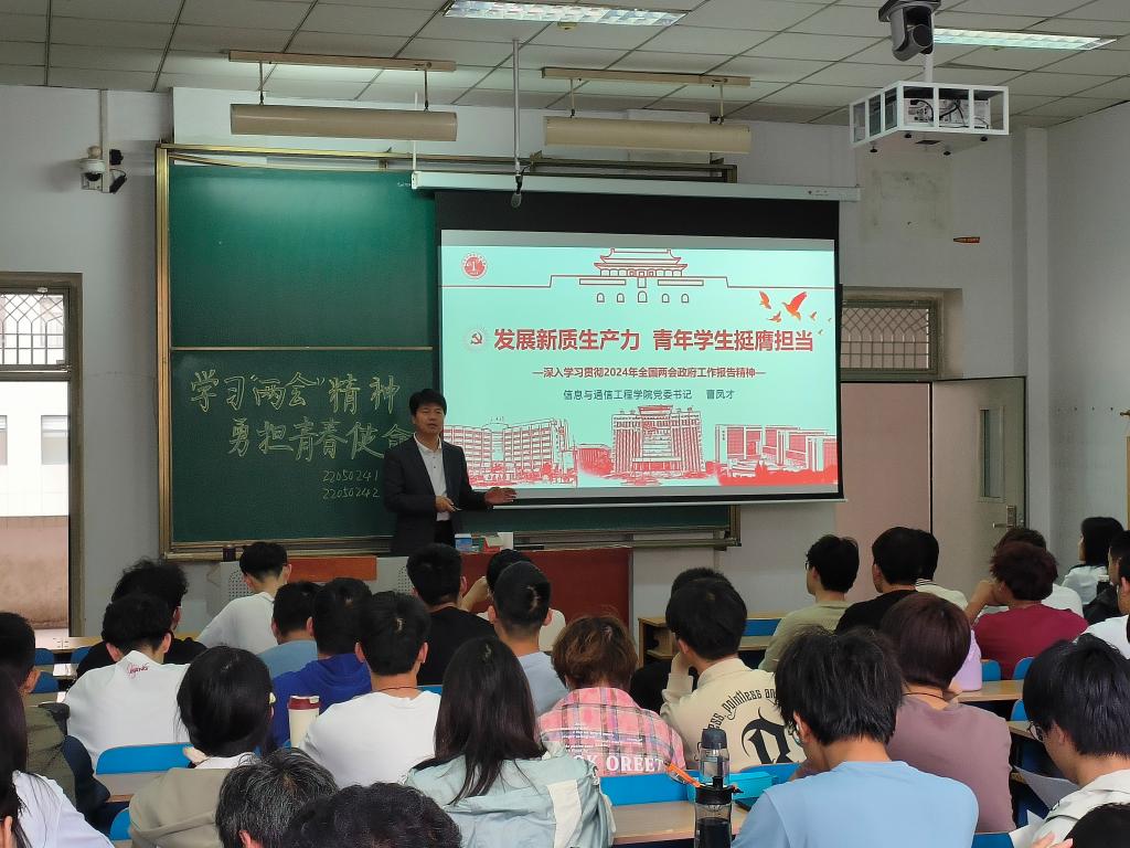 公司党委书记曹凤才围绕“学习‘两会’精神,把握发展新质生产力的内涵要义”展开分享,为同学们剖析了“新质生产力”这一两会热词,启发引导同学们关注“两会”,观察生活,扎实专业理论基础,投身科技革命创新。
