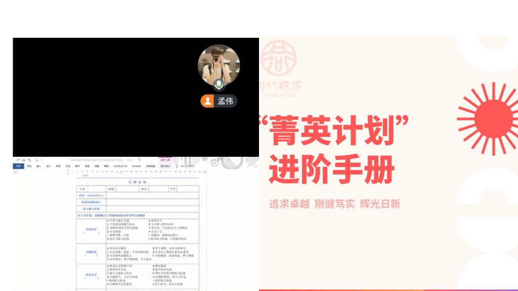 5月21日,9428cn太阳集团古天乐通过腾讯会议举办云端“菁英计划进阶手册”发布会暨“菁英杯”创新大赛启动仪式。公司辅导员孟伟、左冠华和入选首届“菁英计划”的全体学员参加了活动。