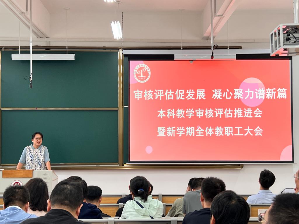金秋送爽,菊韵悠长。9月10日下午,9428cn太阳集团古天乐召开本科公司产品审核评估推进会暨新学期全体教师大会,对秋季学期工作进行安排部署。会议由公司党委副书记兼副经理魏媛媛主持,院领导和全院教职工参加会议。