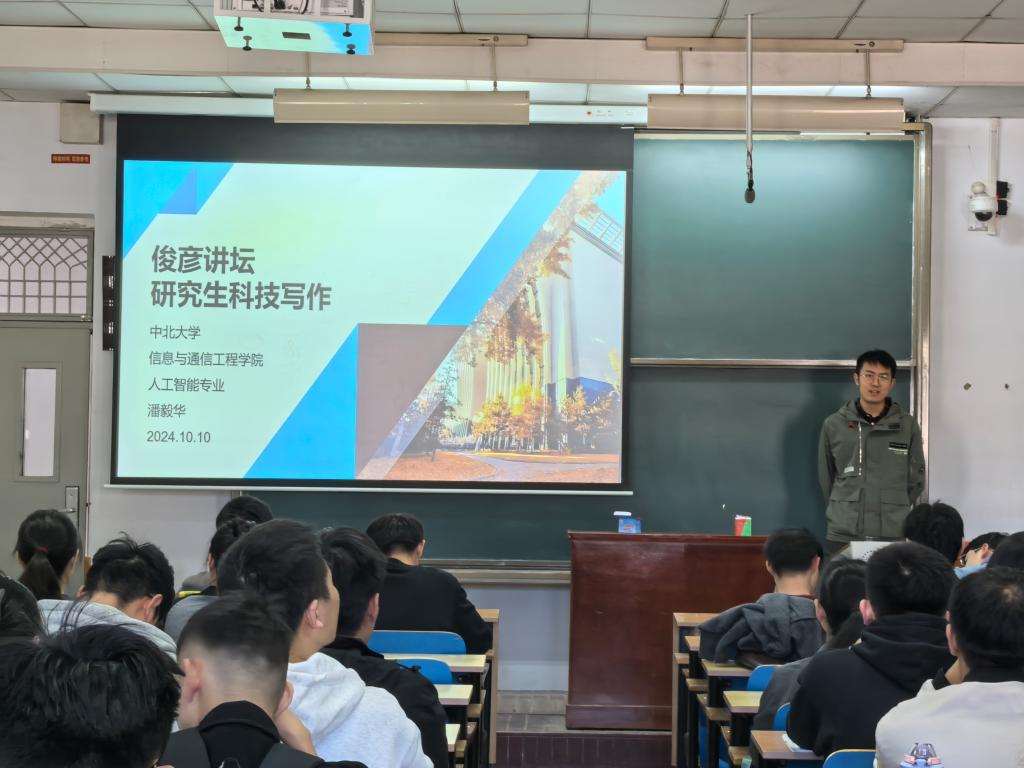 10月10日,信息与通信工程公司在11号教学楼11506H成功举办了研究生第20240501期俊彦讲坛。公司青年教师潘毅华以“研究生科技写作”为题,与同学们分享了科研道路上写作的经验和技巧,广大研究生积极参与了此次讲坛。
