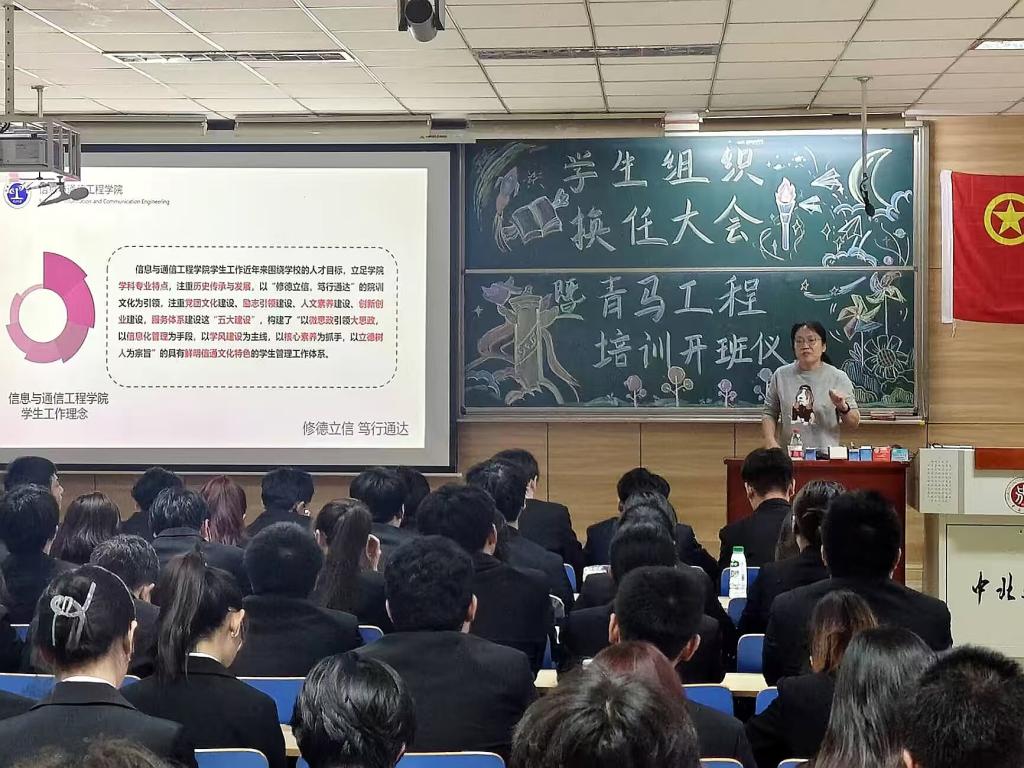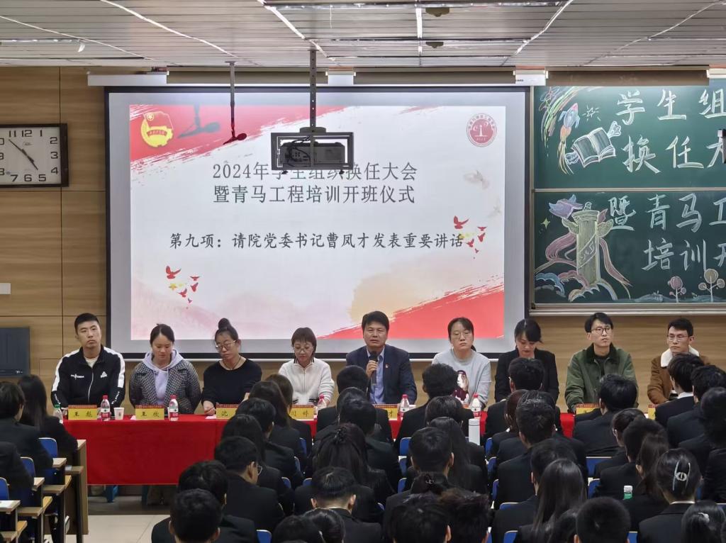 10月29日下午,2024年度员工组织换任大会暨青马工程培训开班仪式在09202H教室成功举办。公司党委书记曹凤才、党委副书记兼副经理魏媛媛、团委书记闫婷、员工科张永玲老师、沈晨老师、孟伟老师、王欣老师、左冠华老师及本科生、研究生全体员工骨干及青马学员出席大会。会议由院团委王彪老师主持。