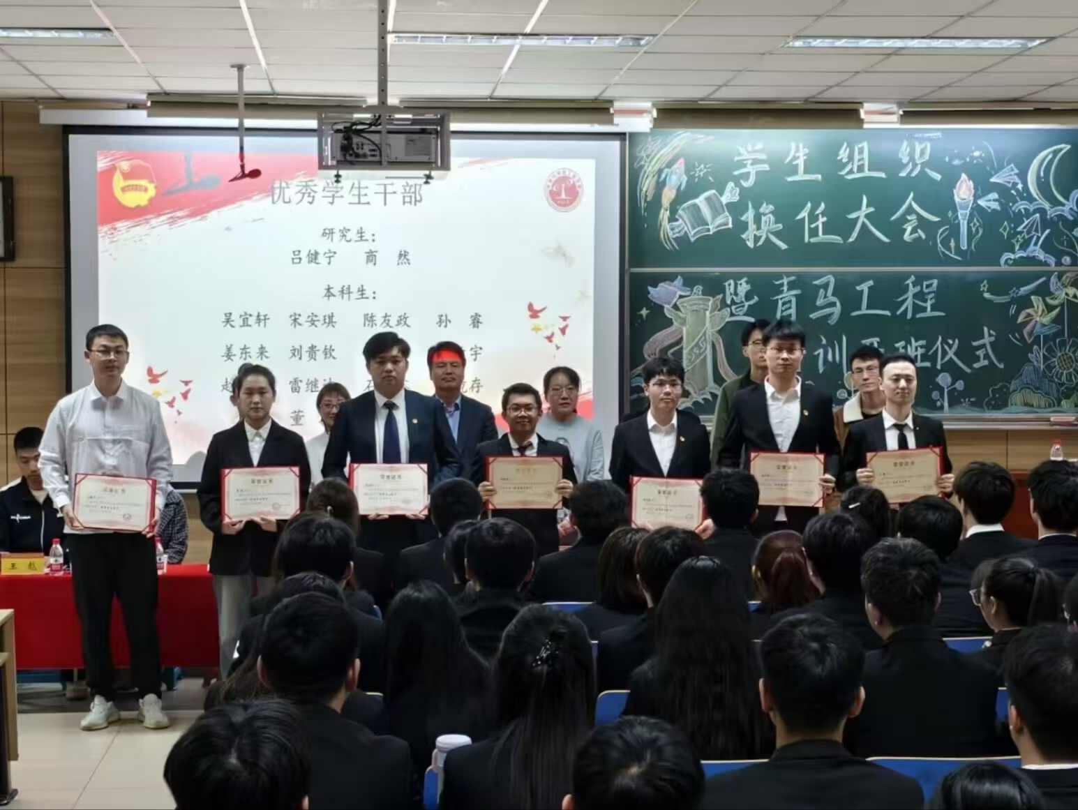 员工科张永玲老师宣读2023年度本科生、研究生优秀员工骨干名单,并为其颁发证书。与会教师分别宣读了团委、员工会、研究生会及其他员工组织员工骨干任命书。左冠华老师宣读了本次青共校培训安排及考核要求。
