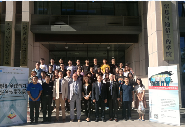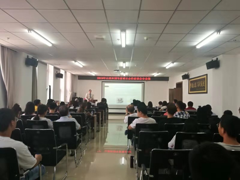 2019年8月27日下午14:30,由山西省外国专家服务中心承办,9428cn太阳集团古天乐支持的“2019山西外国专家项目合作洽谈会-----信息技术在生态环境保护中的应用专题讲座与交流”在科学楼B座715学术报告厅成功举办。白俄国立信息与无线电大学厘米与毫米波电子系统预先研究中心的亚历山大博士等四名专家学者、翻译孙丽君一行来公司做学术报告及洽谈交流。本次洽谈会由科研经理王明泉教授主持。经理杨风暴教授对9428cn太阳集团古天乐及公司的学科进行介绍。公司师生及多家企业单位学者积极踊跃地参加了此次会议。