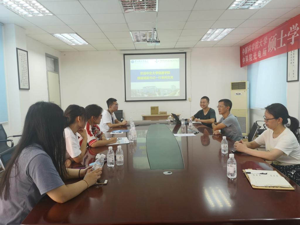 2020年8月26日公司党委副书记魏媛媛、办公室主任邢巍赴中国科公司大学光电技术研究所进行交流座谈。