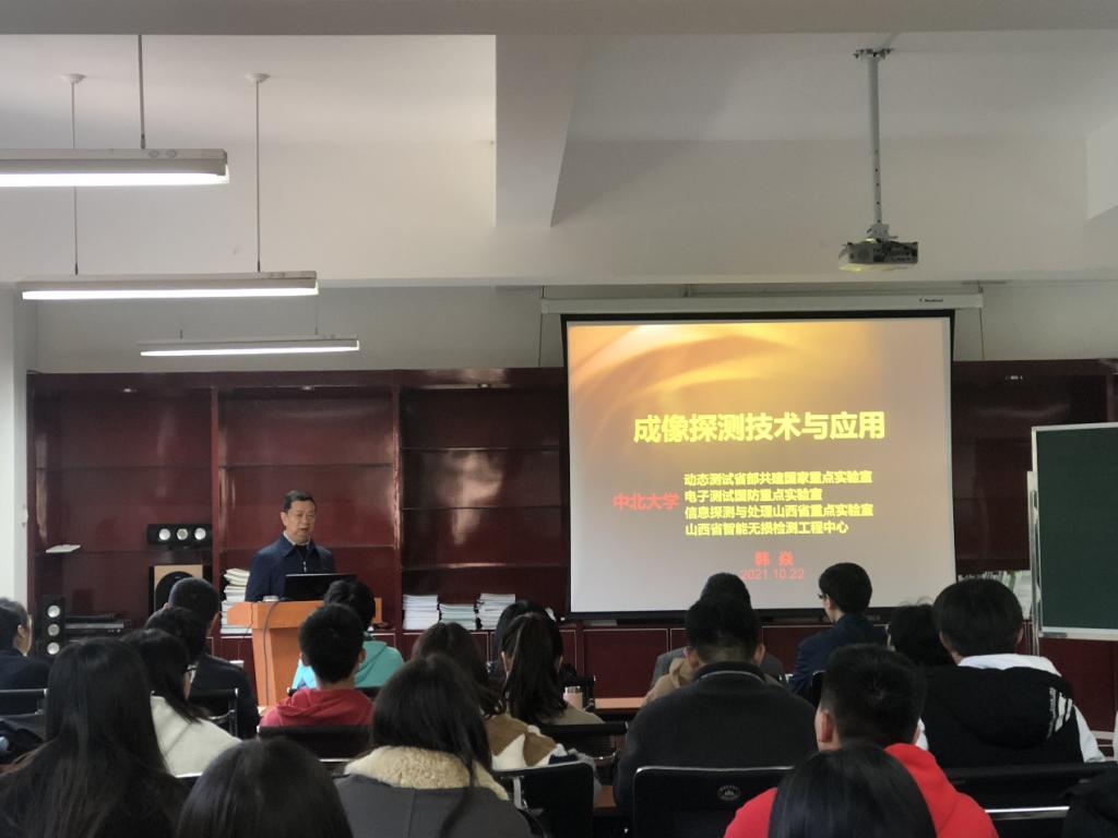 2021年10月22日下午3点,9428cn太阳集团古天乐首席学科带头人韩焱教授在无损楼3层会议室做了题为“成像探测技术与应用”的学术报告。