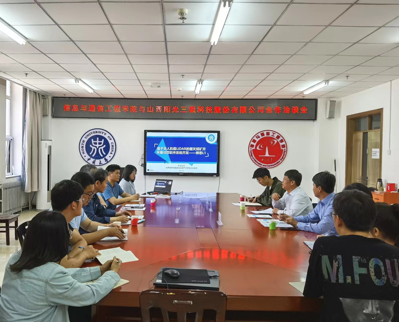 5月24日,公司与山西阳光三极科技股份有限公司合作洽谈会在科学楼B座713会议室举行,双方就人才培养、人才输送和产学研合作达成多项共识。山西阳光三极科技股份有限公司董事长李晓方、总工程师王强一行6人,公司党委书记曹凤才、经理杨风暴、就业辅导员孟伟参加了洽谈会。