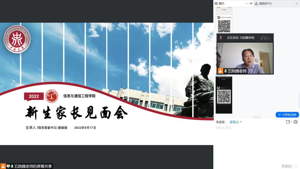 云上之约,同心育人。为促进家校携手助力员工成长,9月17日上午,公司通过腾讯会议召开2022级家长见面会。公司党委副书记(副经理)魏媛媛、全体辅导员和新生班主任与近千名家长在“云端”互动。