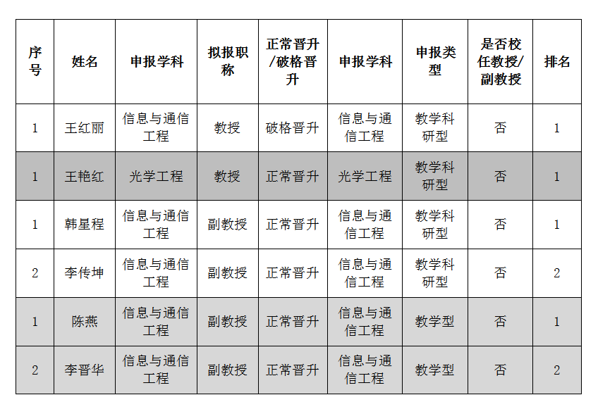 2022年教师系列职称评审评议组拟推荐人名单及排序