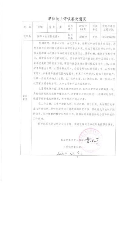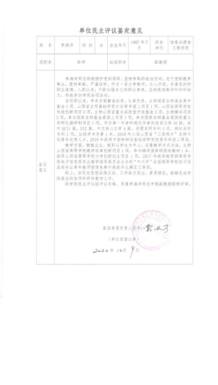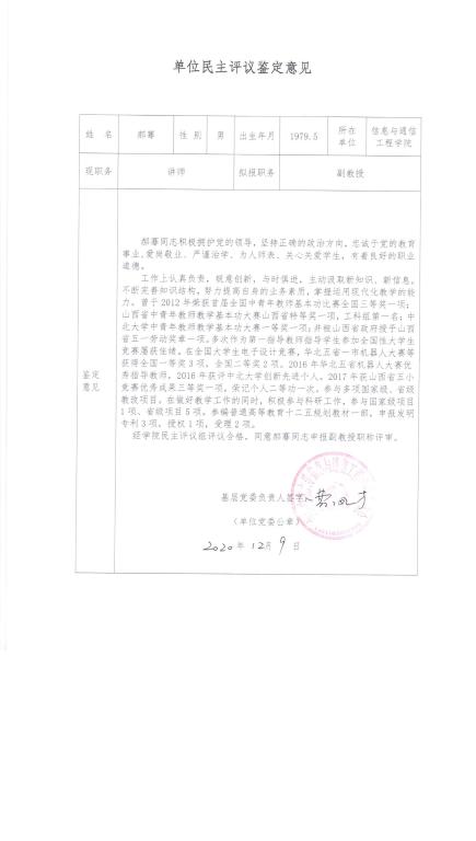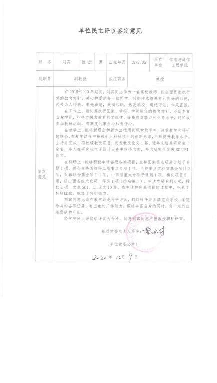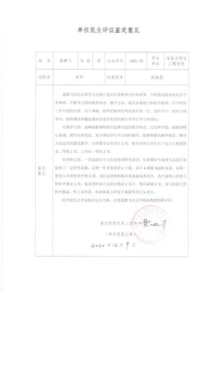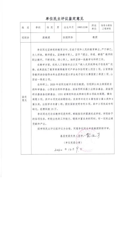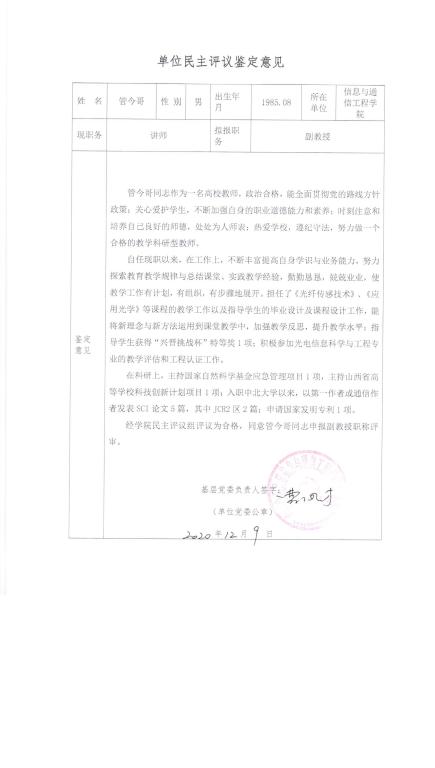 2020年教师专业技术职务任职评审人员民主鉴定意见