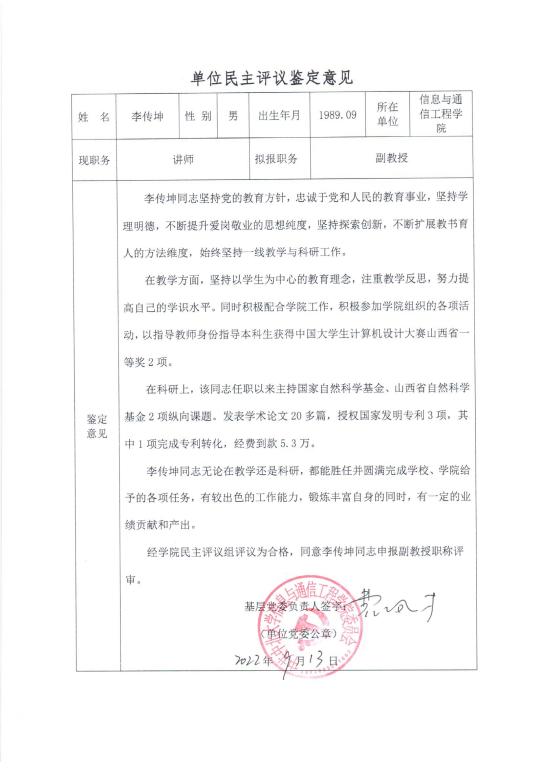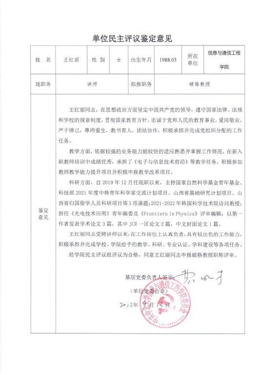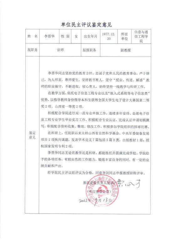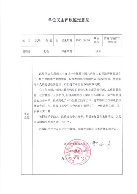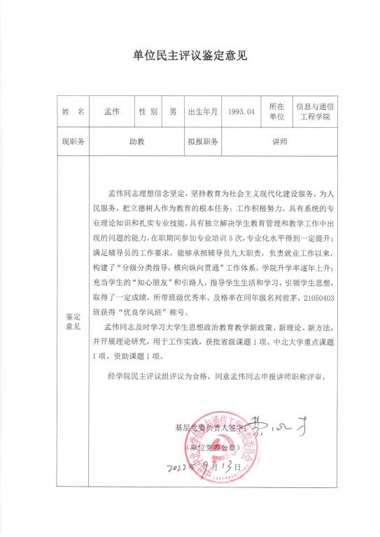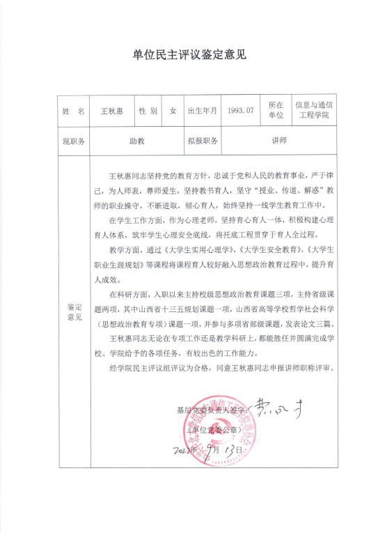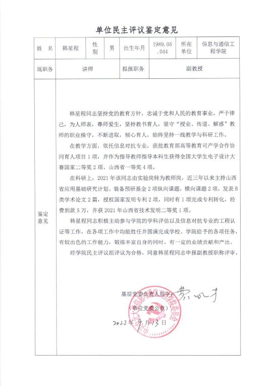 2022年9月12日上午,公司在713会议室召开2022年教师职称参评人员民主评议会,经过参评人员答辩、评委提问和投票,全部合格,现予以公示。