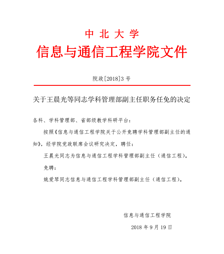 关于王晨光等同志学科管理部副主任职务任免的决定