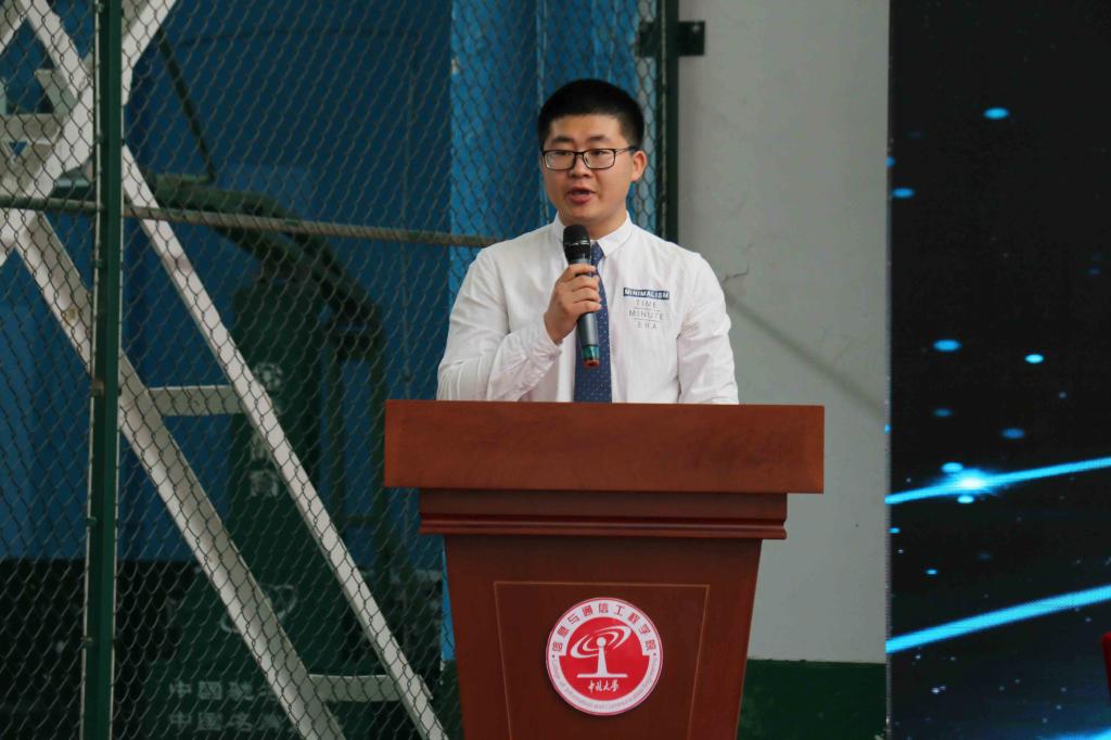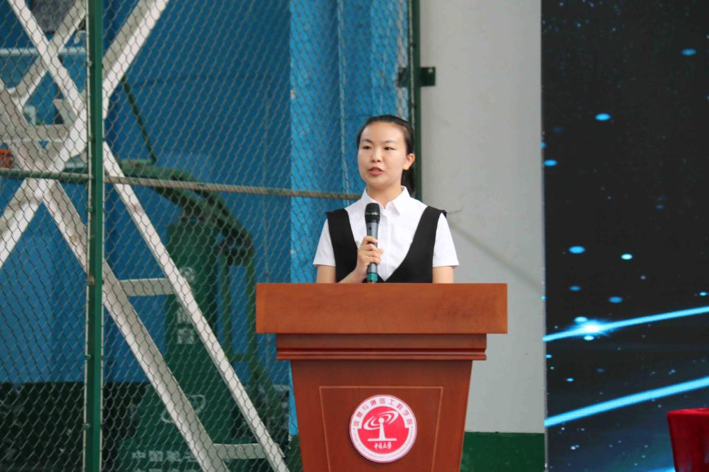接着,毕业生代表程成同学发言,总结四年来学到的知识与技能,深切表达了对公司领导、老师的感激之情和对同学、朋友的不舍之情,以及即将踏入社会的坚定信心。在校生代表杨鸿泽同学发言,表示将继承学长、学姐们的精神,努力向学长、学姐学习,报效祖国,回报社会,同时也祝愿学长、学姐们在日后事业中鹏程万里,一帆风顺。全体毕业生在田东明同学的领誓下,发出“修德立信,笃行通达”的铮铮誓言。