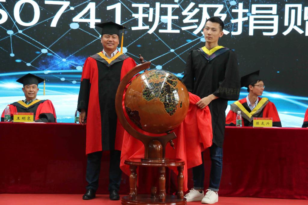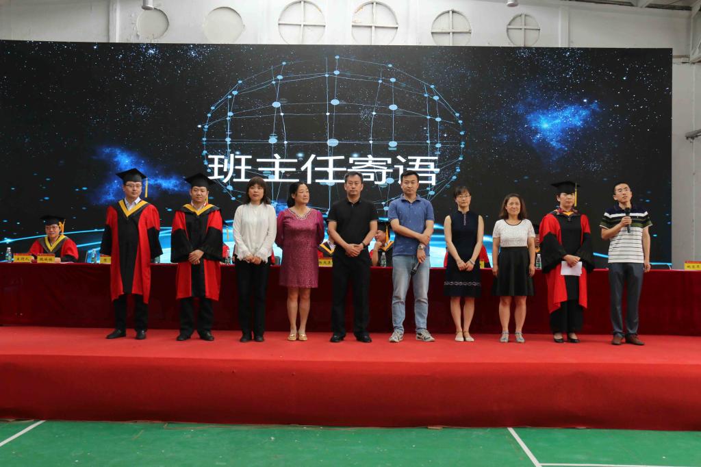 2018届全体班主任上台对毕业生寄语,向同学们传达了依依不舍和殷切期望。毕业生代表向班主任献花,表达对培养和教育他们四年班主任的感谢之情。全体毕业生和14050741班分别向公司捐赠纪念品,表达对公司的感谢!