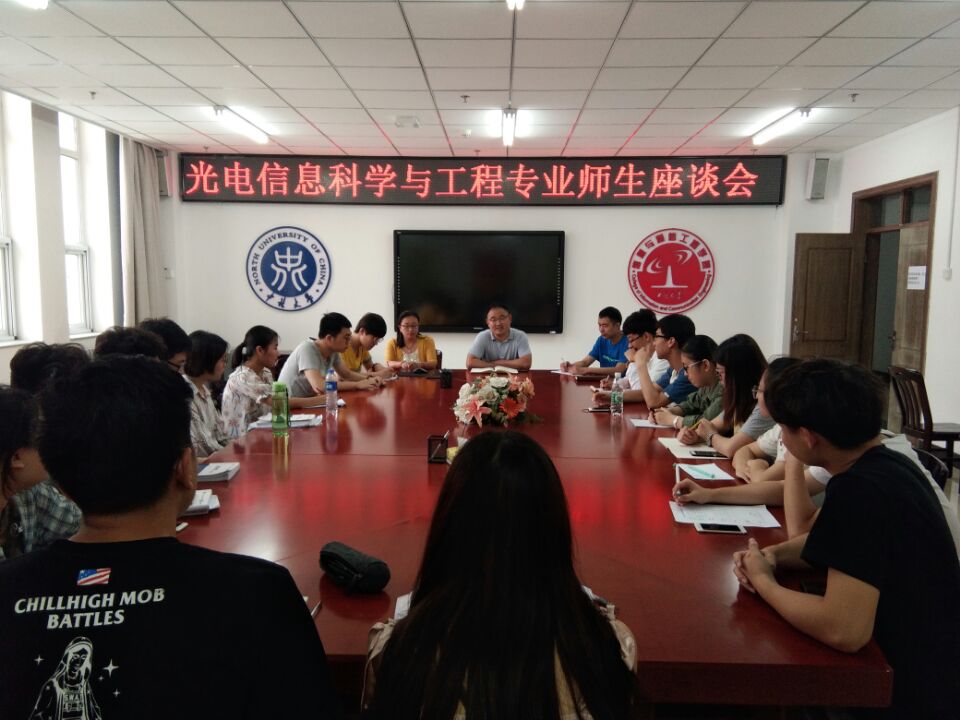 2018年6月20日上午8:30,在院楼713会议室,光电信息科学与工程专业师生开展了座谈会。会议的主要目的是促进师生之间的交流,了解员工目前的学习情况,同时听取员工对光电这一学科在教学、科研、实验等方面的意见和建议。出席本次座谈会的老师有学科管理部副主任张志伟教授、王艳红教授;班主任代表管今哥老师、陈淑霞老师;2015级、2016级各班员工代表。