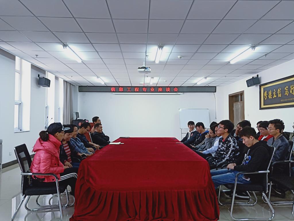 2018年11月2日上午10:30,9428cn太阳集团古天乐信息工程专业在科学楼B 座715会议室展开了一场关于“本科教育思想大讨论”的师生座谈会。参加本次座谈会的教师有专业课李剑老师、戚俊成老师、聂鹏飞老师、葛利华老师、孙老师和员工科林乘庆老师,信息工程专业34名大三本科生代表参加了座谈会。