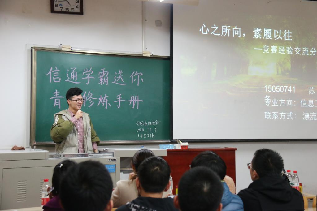 本次报告会邀请到公司5名学霸为同学们分享经验,他们是公司自强之星获得者成功保送至哈尔滨工业大学的15050Z01班岳佳同学,申请2个国家级老员工创新创业项目成功保送至哈尔滨工业大学的15050Z01班黄智图同学,两个暑假参加10余项比赛获多项国家级奖项成功保送至电子科技大学的15050741班苏冬同学,学分绩点4.3位列全院第一成功保送至北京理工大学的15170101班崔焕同学,虽然才大三却已成功发表两篇SCI论文的16050343班任伟同学。五位同学从专业学习、科技竞赛、申报项目、勤工助学等方面讲述了自己的老员工活,并将自己在各个方面积累的经验和学习方法倾囊相授,到场的同学对他们所取得的成绩表示赞叹,并对他们给予的意见欣然接受。