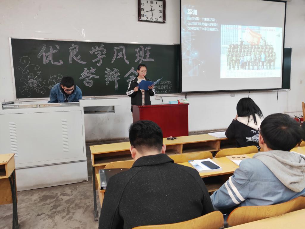 答辩会开始时,邢杰老师对公司优良学风班的评选细则做了详细解读。接下来,参选优良学风班的22个班级通过PPT等形式从班级建设、学风建设、班级成绩、科技创新活动获奖等方面汇报了班级在学风建设方面取得的优异成绩,充分展示了班级精神风貌。