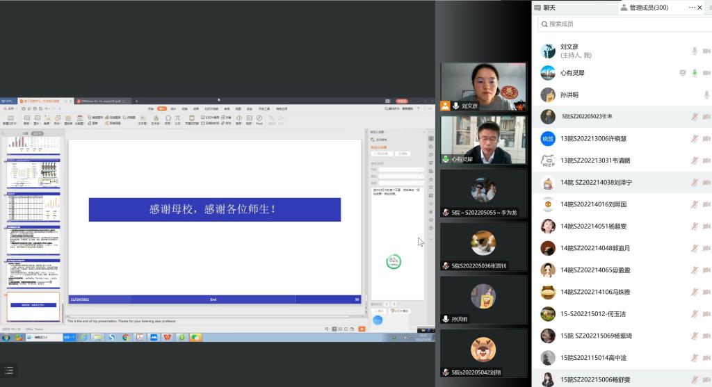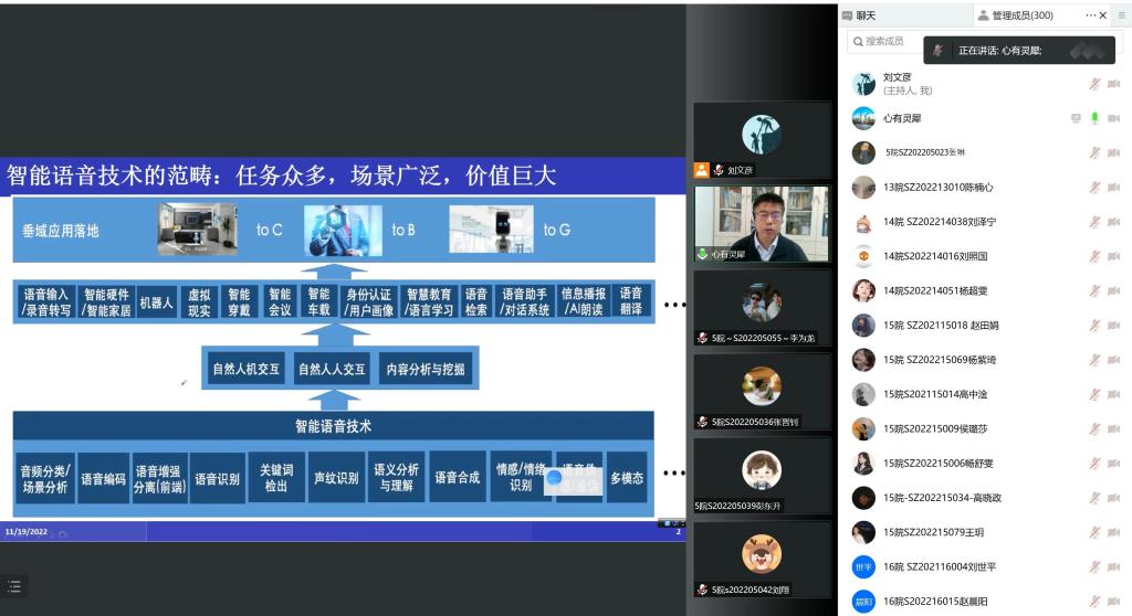 2022年11月19日下午,公司通过线上会议举办了研究生第20220505期华彩讲坛。公司特邀南昌航空大学孙成立教授开展了学术讲座,主题为《基于深度学习的语音增强处理技术-研究进程及展望》。公司广大青年教师、研究生积极参与了此次学术交流会。