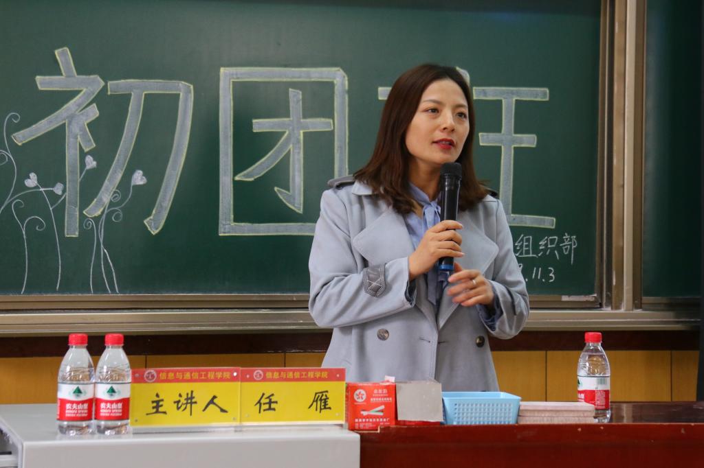 在第二天的初团班培训中,蔡文钊同学为大一班团干部做了团务知识培训;闫婷老师指出做好一名员工干部最重要的是做好自己本职工作。任雁老师做了题为《员工干部工作实务中的“误”与“悟”》,她讲到,“你只是看起来很努力”,青年员工要勇于进取、砥砺奋斗,不要让努力仅仅感动自己。