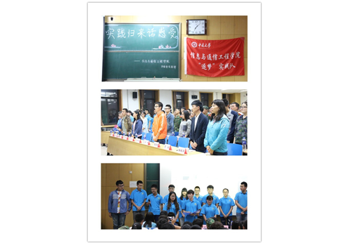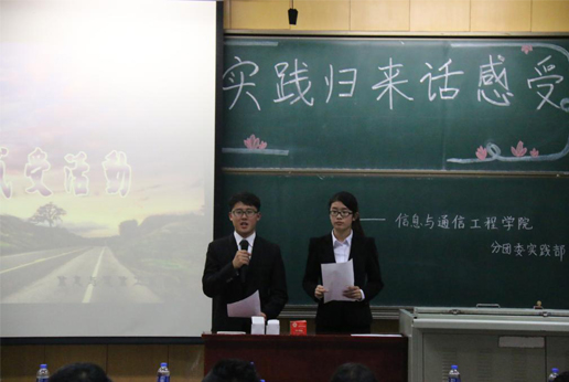 伴着庄严的团歌本次活动正式开始。首先,由李欣老师上台讲话,简洁中肯地总结了这次暑期社会实践,同时希望参加这次暑期社会实践的同学们能继续努力,总结经验,不断创新,明确自己的使命,激发自己的热情,调整和完善自己的知识结构,战胜各种困难和挫折,锻炼自己的意志和毅力,为以后的工作做好充分的准备。接着,由杜老师宣布个人和集体实践的汇报名单。紧接着社会实践员工代表从不同角度、不同层面向大家讲述了自己的亲身经历,向同学们传授了宝贵的经验。最后,“逐梦”实践队的负责人郭志浩给大家讲述了他们团队的暑期社会实践活动,回顾实践活动的点点滴滴,更多同学了解到社会实践的真正的目的和意义,纸上得来终觉浅,绝知此事要躬行。他们朴实真挚的话语向所有员工展示了老员工的强烈社会责任感和使命感。随着“逐梦”歌曲的演唱本次座谈会圆满结束。