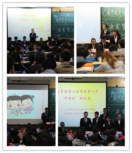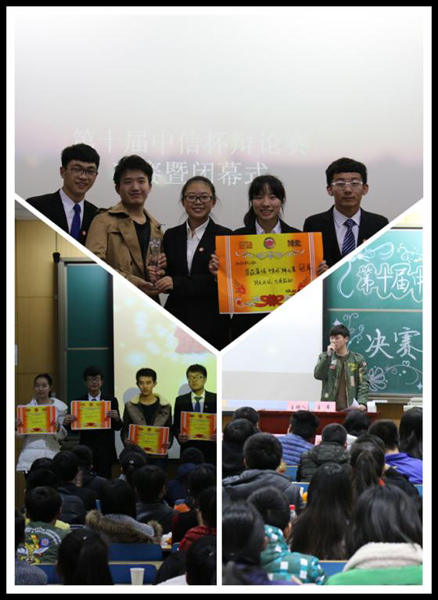活动伊始,员工会主席郭志浩代表发言,表达了自己对同学们的支持与祝福。接着由优秀辩手发言,分享了自己在此次辩论赛中的提升与收获。正式比赛在两段介绍正反方的视频中拉开了帷幕。双方就“信息碎片化是提升了还是降低了国民认知水平”这一辩题展开了精彩绝伦的辩论。在开篇立论中,两方一辩旁征博引,表达了己方的论点,在接下来的盘问与公辩阶段,双方你来我往互不相让,将现场的气氛逐渐炒热。这时评委一针见血地对双方此前陈词中出现的不足提出了犀利的问题,而辩手们灵活机智地进行了解答,赢得了观众的阵阵掌声。接下来的自由辩论将比赛推向了高潮,场上剑拔弩张针锋相对,思维的火花不停地迸溅,这一环节也为15050342班的胜利奠定了基础。接着,由双方四辩总结陈词。经过评委的公正评判,本次“中信杯”辩论赛由15050342班夺得桂冠。而在评委们紧张决策的时候,同学们欣赏了由学习部带来的节目以及另一场精彩的明星辩论赛。