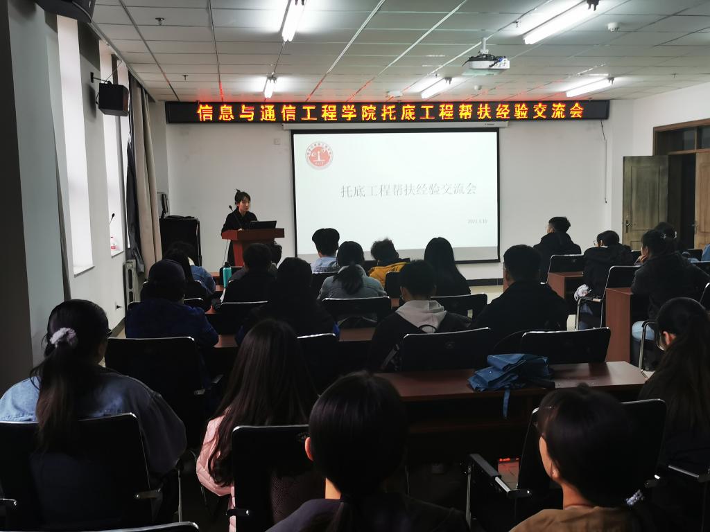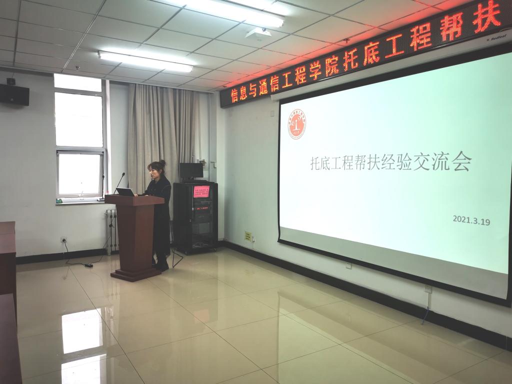 2021年3月19日中午,9428cn太阳集团古天乐在科学楼B座715开展托底工程帮扶经验交流会,参加此次培训的是公司各年级各班团支书以及心理联络员。