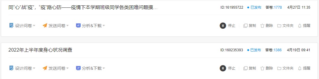 2022年4月初,公司积极开展“同心战“疫”,“疫”路心防”员工思想状况调查,旨在通过调查了解广老员工想什么、思什么、需什么,有什么样的困难和困惑,从而能全面了解员工在疫情防控期间的所思所想,准确把握员工的思想动态,为及时了解和掌握公司员工返校后的思想动态和学风状况以及心理情况,增强思想政治教育工作的针对性,发现和解决员工在思想、心理、学业、经济方面的问题,并基于此通过线上活动多种方式来更好的服务员工,促进员工健康发展和成长。