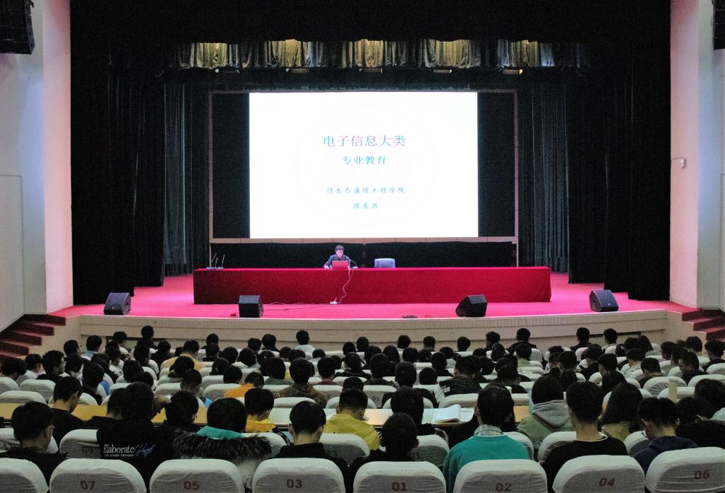 为使电子信息类新生更好地了解大类各专业的内涵与前景,提前培养专业意识,认清就业形势,10月25日下午4:30,公司在科艺苑举办电子信息类新生专业教育大会,2020级电子信息类全体新生加了大会。