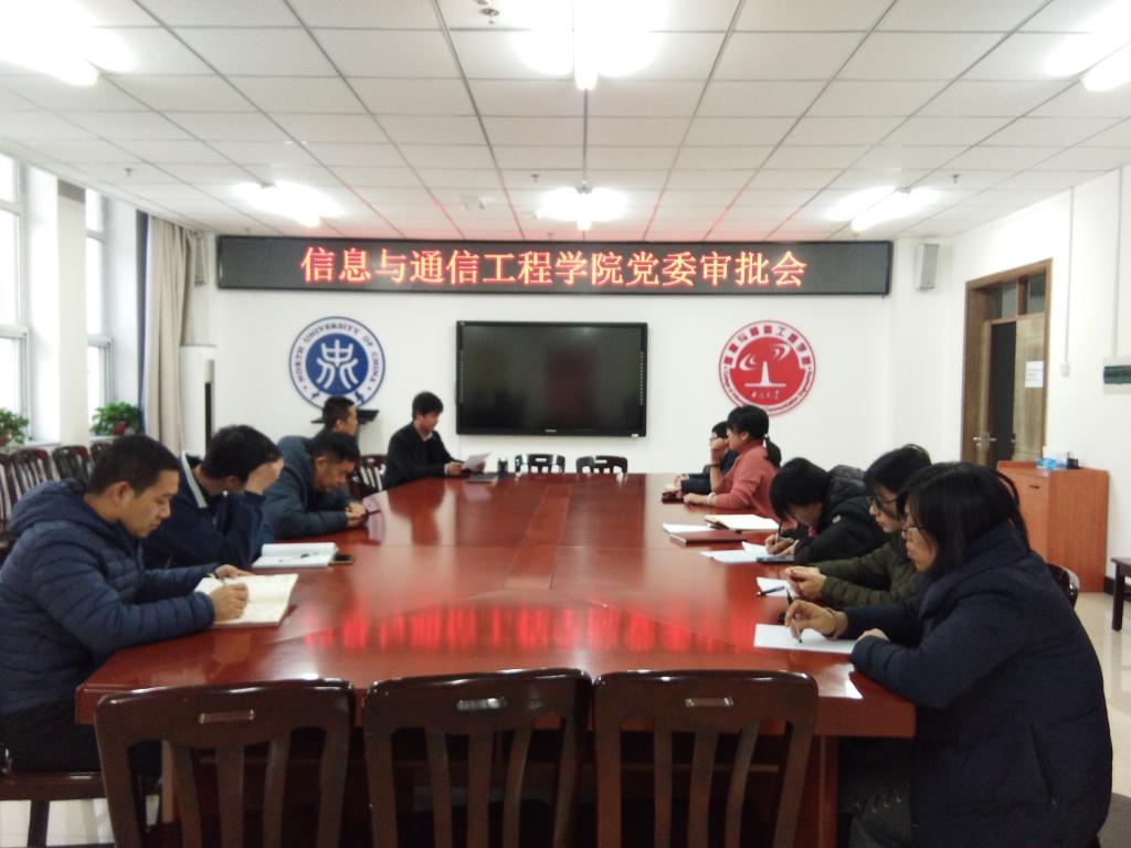 信息与通信工程公司党委于2019年12月29日下午4点在科学楼713会议室召开了本学期关于公司党员发展的党委审批会。