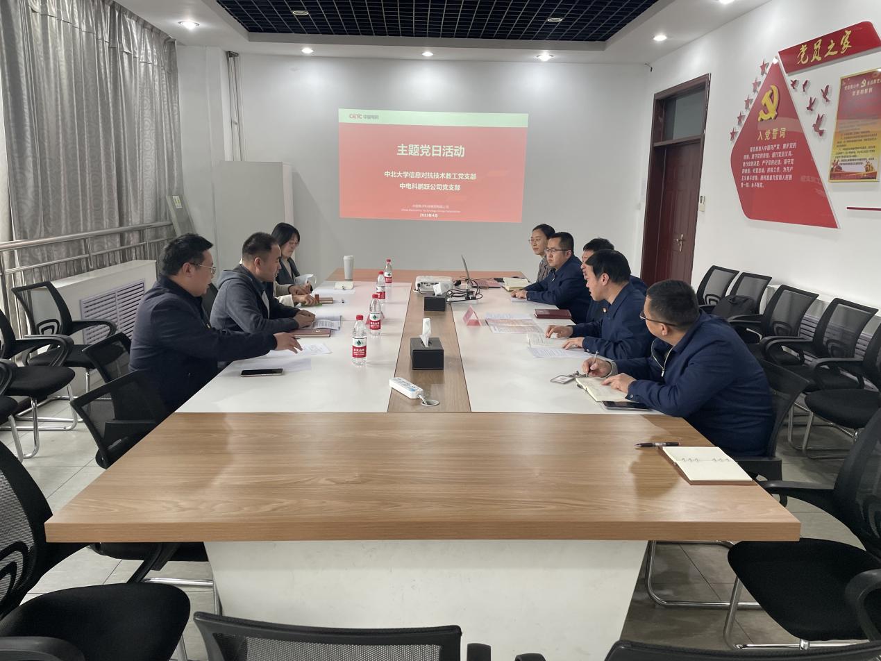 2023年4月10日下午,根据党支部联合共建协议和党支部学习计划,信息对抗技术教工党支部在支部书记姚金杰带领下,前往中电科鹏跃公司,与公司党支部开展联合主题党日活动。
