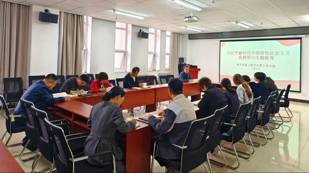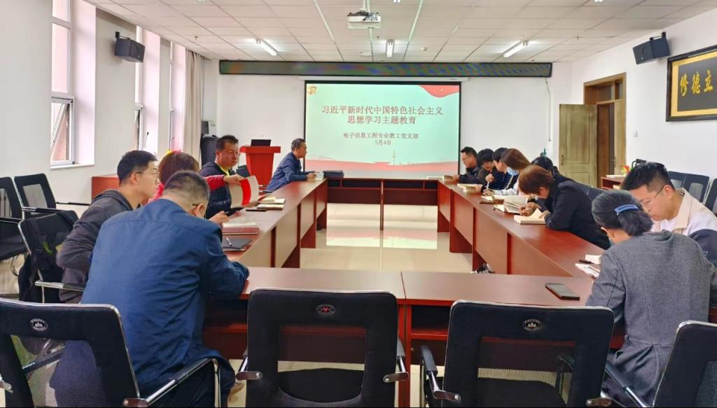 为深入学习贯彻习近平新时代中国特色社会主义思想,2023年54日,电子信息工程专业教工党支部在科学楼B座715会议室开展主题教育活动。