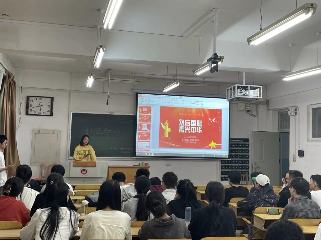 为纪念“9.18” 事变,弘扬爱国主义精神,2023年9月27日,电子信息工程员工党支部在10507H教室开展了“勿忘国耻 振兴中华”主题党日活动。