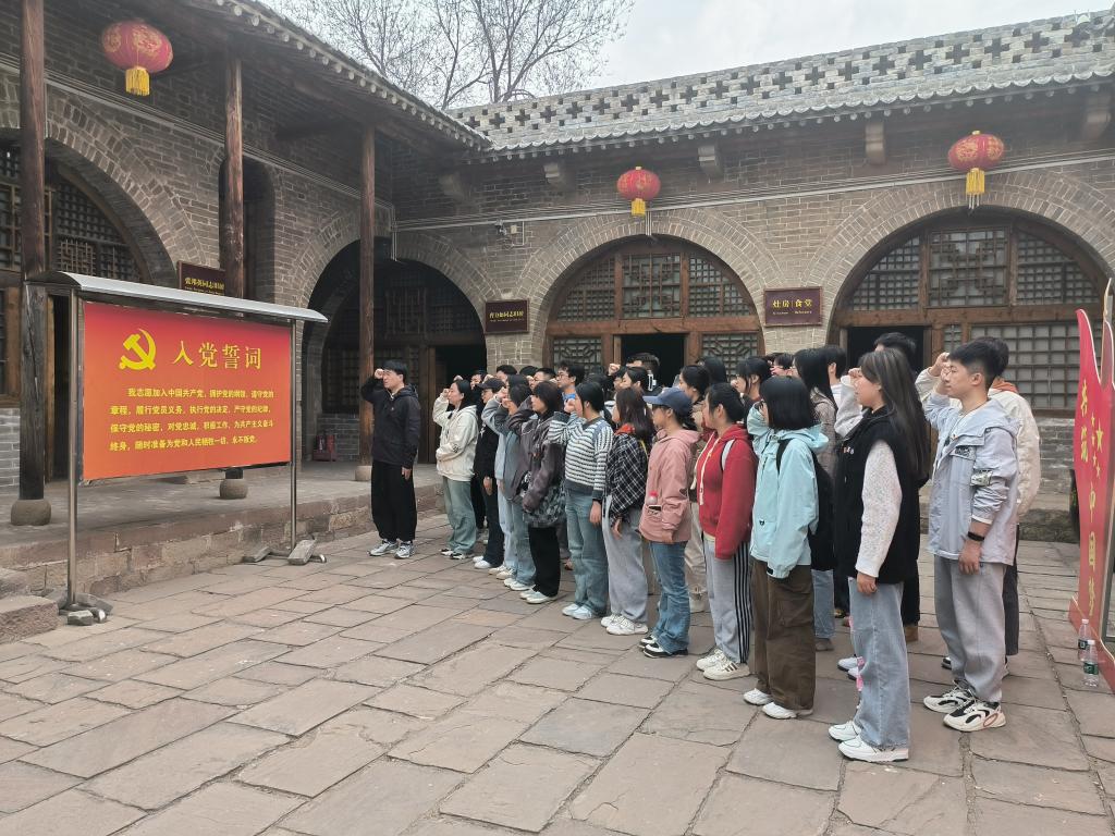 到达南圪垛中共中央西北局旧址后,在讲解员的带领下,党员们怀着无比崇敬的心情参观各个陈列室,驻足凝视老照片、旧实物,追忆中央后委在吕梁临县开展工作的那段历史,追忆革命先辈们不畏困难、艰苦奋斗的革命精神。最后,全体党员面向党旗庄严宣誓,重温入党誓词,再一次做出对党的庄严承诺,在党旗下接受心灵的净化和洗礼。