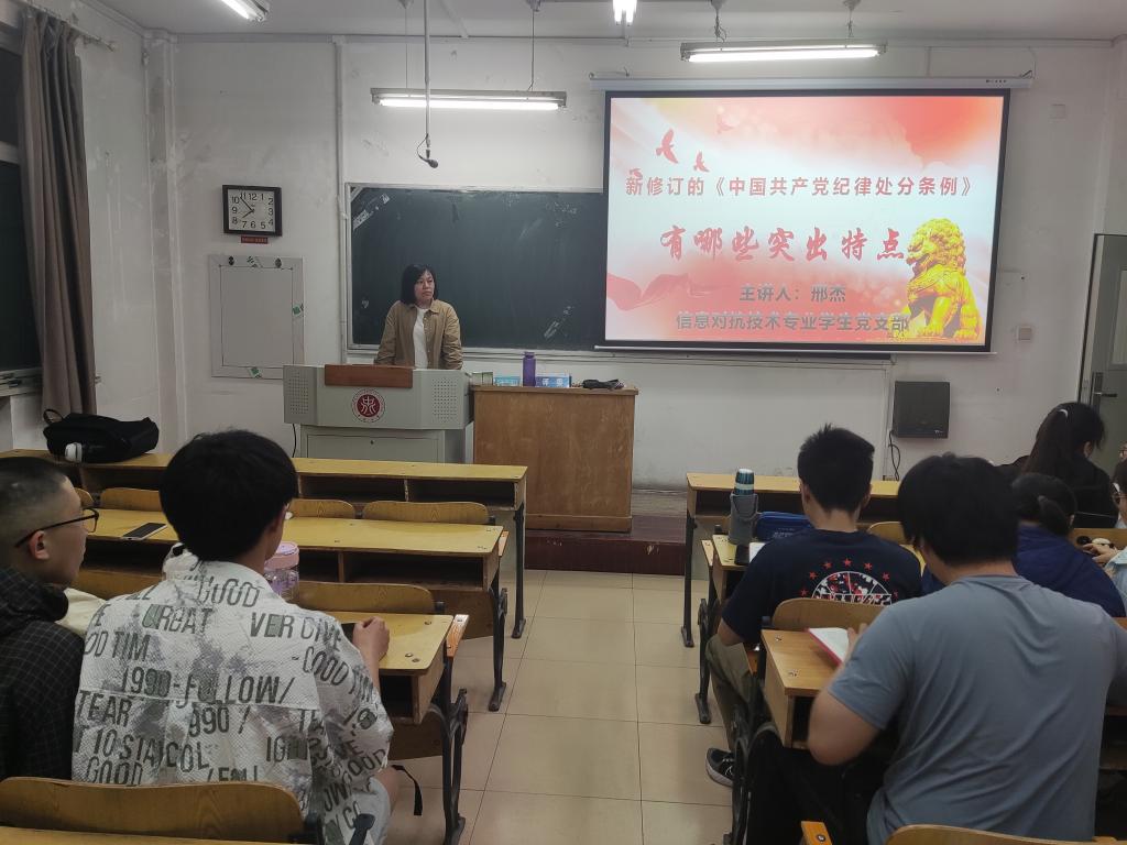 2024年6月5日晚,信息对抗技术专业员工党支部在10209Z开展党纪学习教育专题党课,全体党员参与此次党课培训。