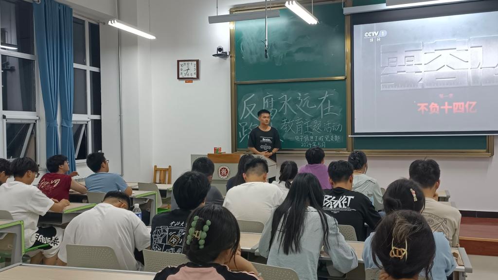 为进一步推动党纪学习教育走深走实,提升员工党员廉洁自律意识,筑牢拒腐防变的思想根基,2024年5月23日在18103教室,电子信息工程专业员工党支部组织党员集中观看了警示教育纪录片《零容忍》。