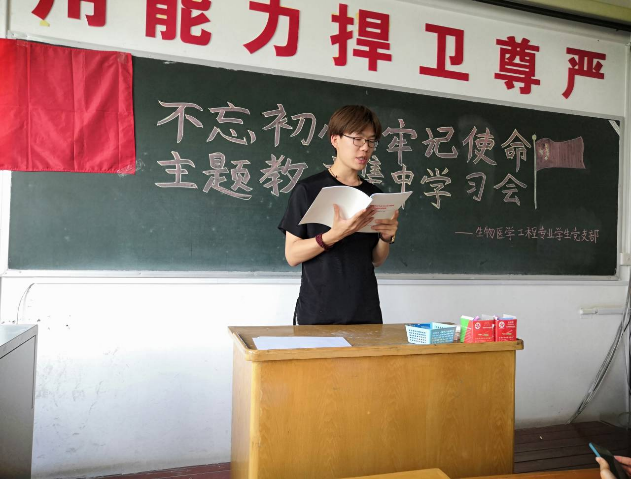 首先,支部书记石老师带领大家一起学习了“不忘初心,牢记使命”主题教育学习资料,石老师给我们讲解了本次主题教育的总任务和具体目标,并且将五个具体目标与我们老员工联系了起来,她教导我们要时刻用党员的标准要求自己,努力提升自身素养,要在大学里找到自己感兴趣的并且擅长的事情去做,要勇敢尝试,敢于担当,她说这才是青年党员应有的品性。石老师还讲述了许多当代勇于牺牲、乐于奉献的优秀党员的事例,使同学们感受到党员是一个多么光荣的称号,感受到自己的身上同样也承担着为人民服务的使命。