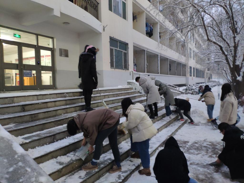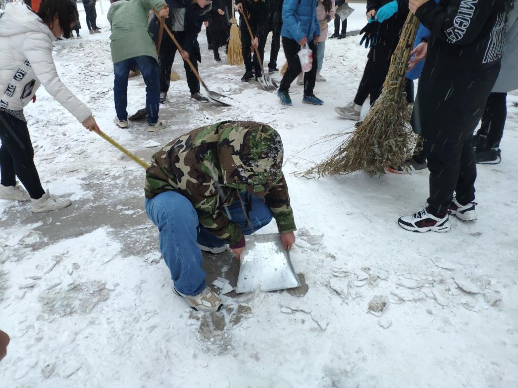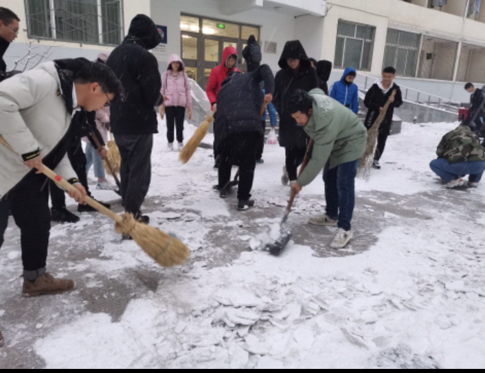 东至员工宿舍区、电工电子实验中心,西至一号教学楼前长达数千米的中央大道,同志们分工有序、热情高涨。大家齐心协力,配合默契,铲的铲、推的推、扫的扫,把校园道路上的残雪一点点挖起来,并运到路旁边。冬日的寒风阻挡不住党员清扫积雪的热情,忙碌的身影构成了冬日一道亮丽的风景线。经过大家的齐心奋战,道路变得干净畅通,为师生的通行提供了便利,营造了干净整洁的校园环境。
