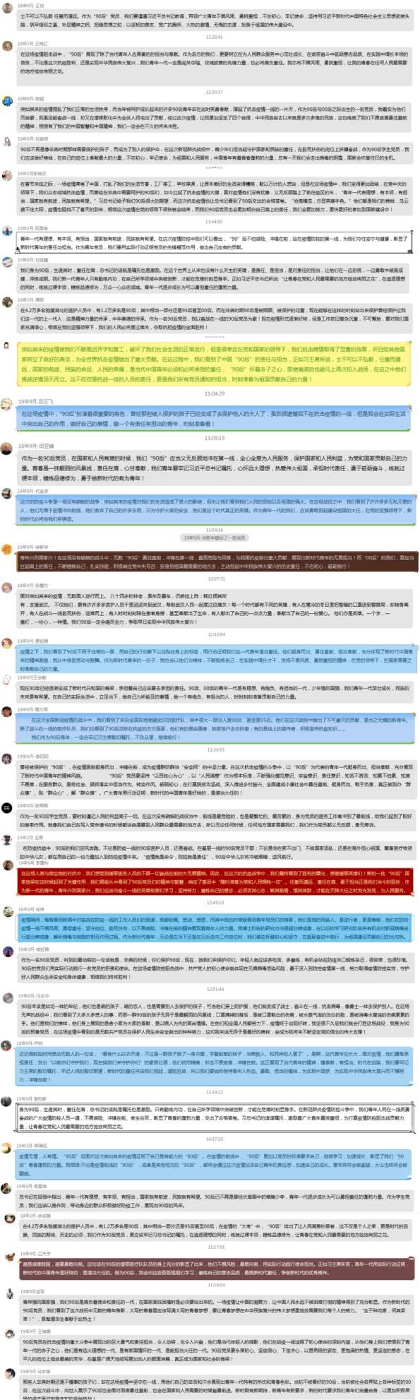 支部风采 您现在正在浏览: 首页 >> 支部风采 >> 正文 光电信息科学与工程专业员工党支部学习习近平总书记给北京大学援鄂医疗队全体“90后”党员的回信 发布时间: 2020-03-16 作者: 浏览次数: 2020年3月15日,习近平总书记给北京大学援鄂医疗队全体“90后”党员回信,向他们和奋斗在疫情防控各条战线上的广大青年致以诚挚的问候,勉励广大青年不惧风雨、勇挑重担,让青春在党和人民最需要的地方绽放绚丽之花。总书记的深情寄语和殷切嘱托,也同样激励着我们。 9428cn太阳集团古天乐光电信息科学与工程专业党支部的全体党员和预备党员于3月15日主动学习并热议总书记回信内容。同时,党员同志们还踊跃发表了自己学习后的感想,以表示我们这些“90后”也不甘示弱,积极响应习主席的号召,做好自己的每一件事。 上一篇:向榜样学习 为祖国出力——电子信息工程员工党支部共读总书记给北大援鄂医疗队的回信 下一篇: 通信工程专业员工党支部向“最美逆行者”致敬