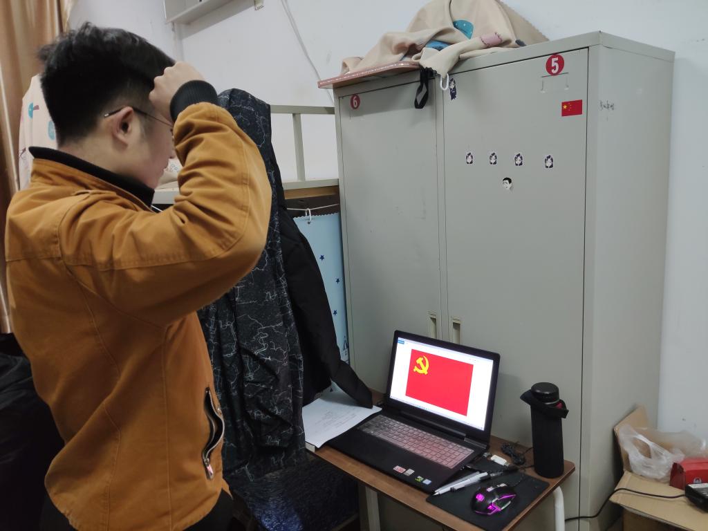 在分享会即将结束时,支部成员们身处祖国大江南北,五湖四海,却共同凝聚在党旗下,重温入党誓词。大家站在新时代的起点,坚持自己的初心,坚定自己的信仰,坚守自己的誓言。