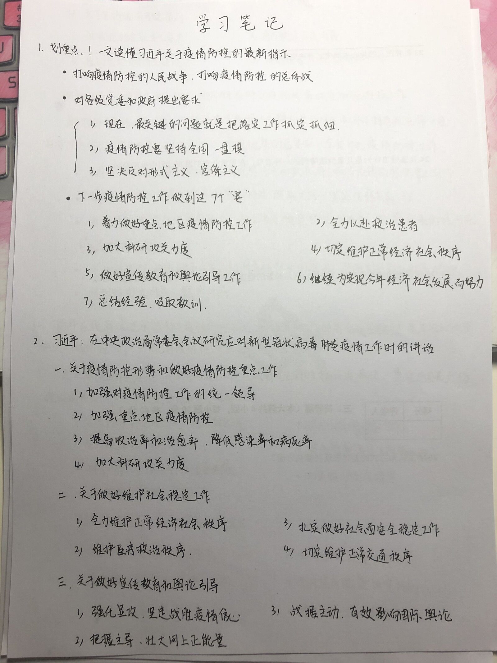 每位党员通过自学,详细做了学习笔记,或画思维导图,大家把学习笔记和心得拍照发支部群相册里,起到了互相督促,比学赶超的效果。通过学习,党员们进一步了解了习总书记如何统筹推进疫情防控和经济社会发展的工作部署,进一步体会到了党中央的领导力量,感受到了大国领袖真挚的为民情怀。