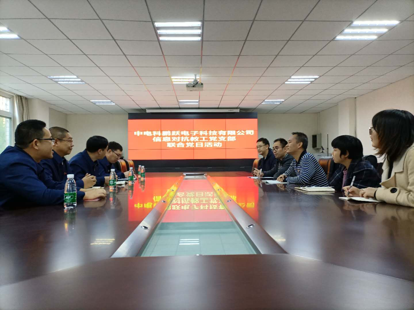 首先双方就党支部组织结构、党员学习、会议记录等内容进行了深入交流,互相了解了双方党支部的运行情况;其次,杨志杰副书记介绍了中电科鹏跃电子科技有限公司的主营业务和公司特色,李凯介绍了党支部所在团队的研究进展,并且双方围绕高精度差分北斗、恶劣环境下的轨道交通检测等技术问题进行了深入探讨;最后,双方初步确定了下次联合党日活动的时间,并就校企双方党建结对共建达成了初步协议。