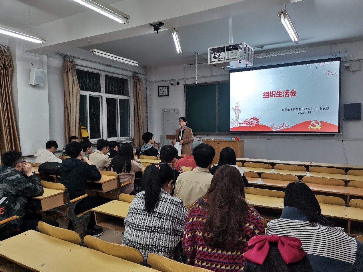 2021年3月15日晚7点,光电信息科学与工程专业员工党支部在10305H组织召开“牢记嘱托强信念,实干担当勤反思”专题组织生活会。