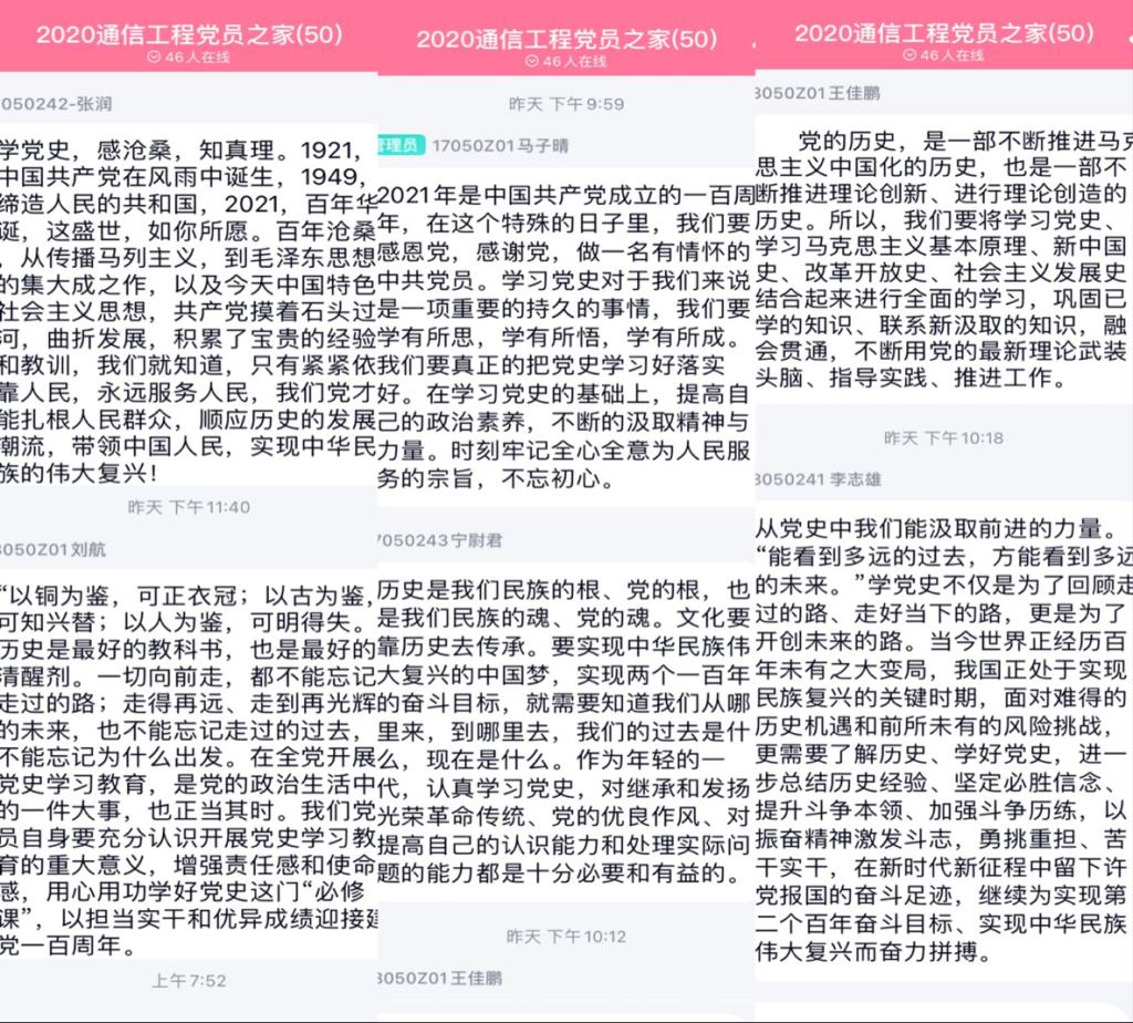 会末,闫婷同志强调历史是最好的教科书,要利用好“学习强国”等线上软件,学好党史这门必修课。在本次党史专题学习结束后,党员们纷纷发表了自己的体会。