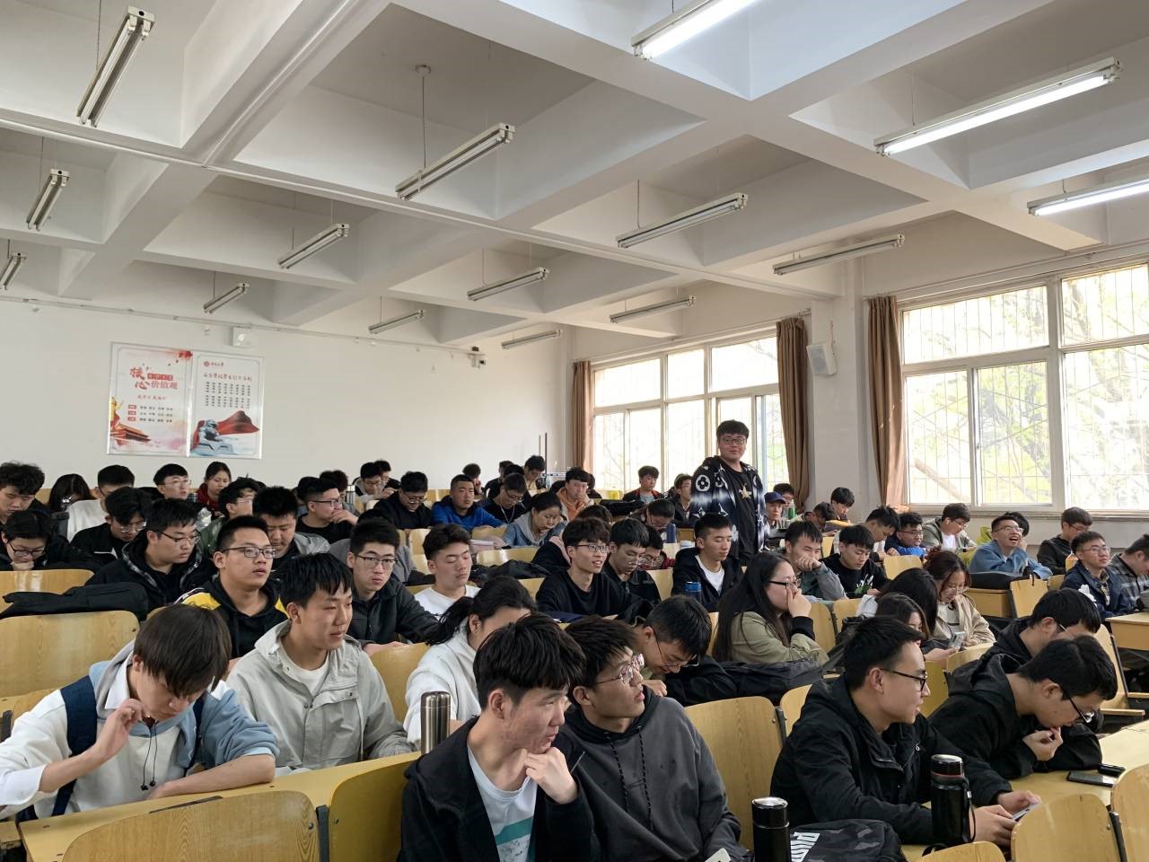 在支部的统筹安排下,44名党员分成六组,同时在6个会场以视频播放、讲解问答等形式开展了党史学习宣讲活动。党员同志们以中国共产党百年历史为基本时间线索,按照党的各大主要历史阶段、党的历次重要会议精神、党的领导人物和大事记、习近平新时代中国特色社会主义思想等专题多方面多角度地对党史进行了全面详细的讲解与论述,带领同学们一起深入学习党的百年历史,让同学们切实感受到这是一部践行党的初心使命的历史、一部党与人民心连心、同呼吸、共命运的历史、一部跨越百年的波澜壮阔与辉煌的历史!