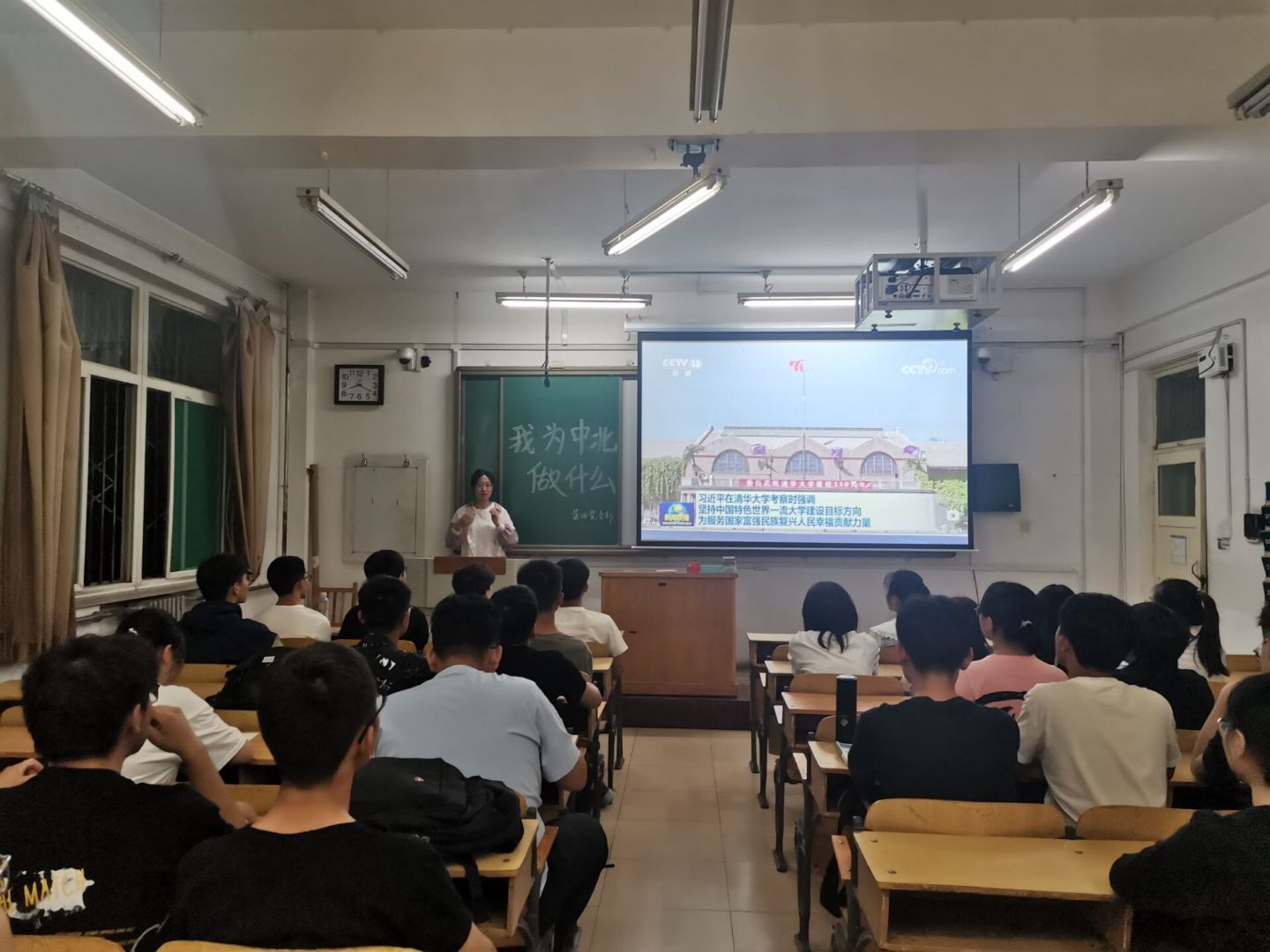 接着,大家就“我为中北做什么”这个问题进行了讨论,同学们也就此问题积极发表了自己的看法。吴洋博同学认为我们应该向清华大学学习,重视提升员工的身体素质。同时也希望同学们有主人翁意识,在学校发展的进程中做出贡献。李升宇同学认为,我们应努力学习科学文化知识,不断培养自己科学求是的实践精神,团结协作的社会觉悟,以及敢上必胜的斗争信念,在知行合一中主动担当作为。