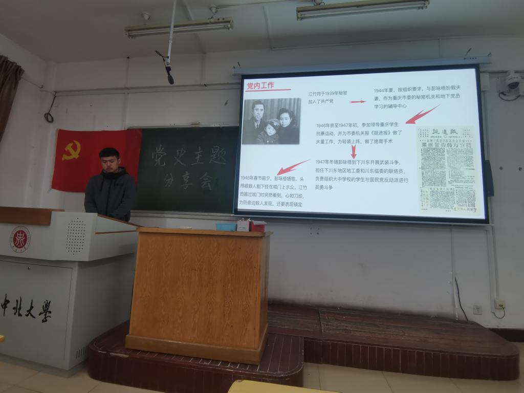 活动刚开始,全捷同志就说到,“每次党日活动都会加深自己对党的敬意,党组织会从根本上解决民生问题,为人民服务。要知道党是在黑暗中诞生,苦难中成长,挫折中奋起,奋斗中壮大,就像平凡的世界里所讲述的,农民们在饿着肚子问:‘怎么算幸福’。人民从饿着肚子到不再要饭到吃上净颗子到能吃上细粮再到现在的经常吃肉,这就是幸福,党给人民带来的幸福。”紧接着,白智超同志便讲到了“三大改造”,用一个个例子证明了“人民的勤务员”不单单是一句口号。童伟伦同志和范梦清同志分别从“百堂党史课”和“觉醒年代”里的一些故事向大家传达一个信息——初心如磐,使命如炬,吾辈生逢其时,重任在肩,必将不忘初心,牢记使命。随后,同学们一起学习了杨靖宇、江姐、黄继光以及叶挺的故事,一段段动人的党史故事,一个个感人的历史人物,在分享与回顾的过程中,与会同学无不心潮激荡。