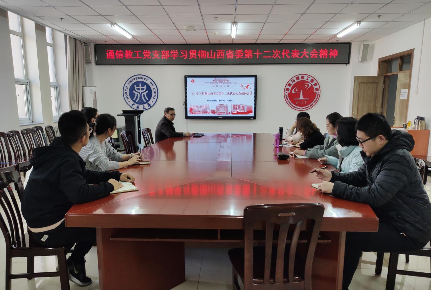2021年12月20日下午,在公司713会议室,通信工程教工党支部全体党员集中学习了山西省第十二次代表大会精神。